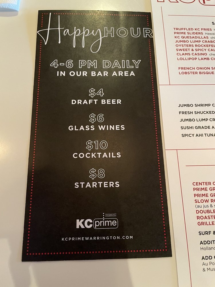 Welcome to KC Prime, where culinary excellence meets a vibrant dining atmosphere. Specializing in seafood, steaks, and satisfying sandwiches, this Warrington hotspot is perfect for casual gatherings, intimate dinners, or special celebrations. The menu features standout dishes like the delectable filet mignon, rich crab cakes, and perfectly cooked prime rib. Patrons rave about the flavorful arugula salad and divine desserts, like the cheesecake, though some desserts may hit or miss.